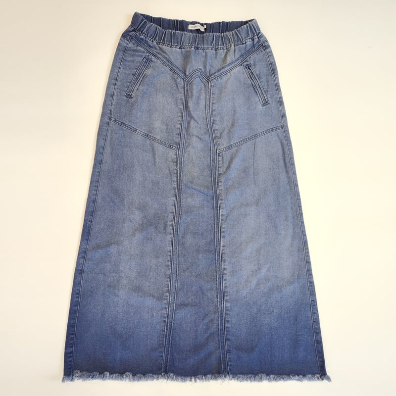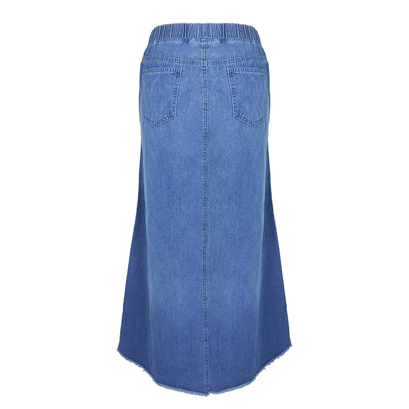 Experience the perfect blend of comfort and style with our Denim Skirt featuring an elastic waist. Designed for the modern woman, this A-line skirt effortlessly combines a chic urban casual look with practicality. Made from high-quality cotton, it provides a soft and breathable fit that you can wear all day long.